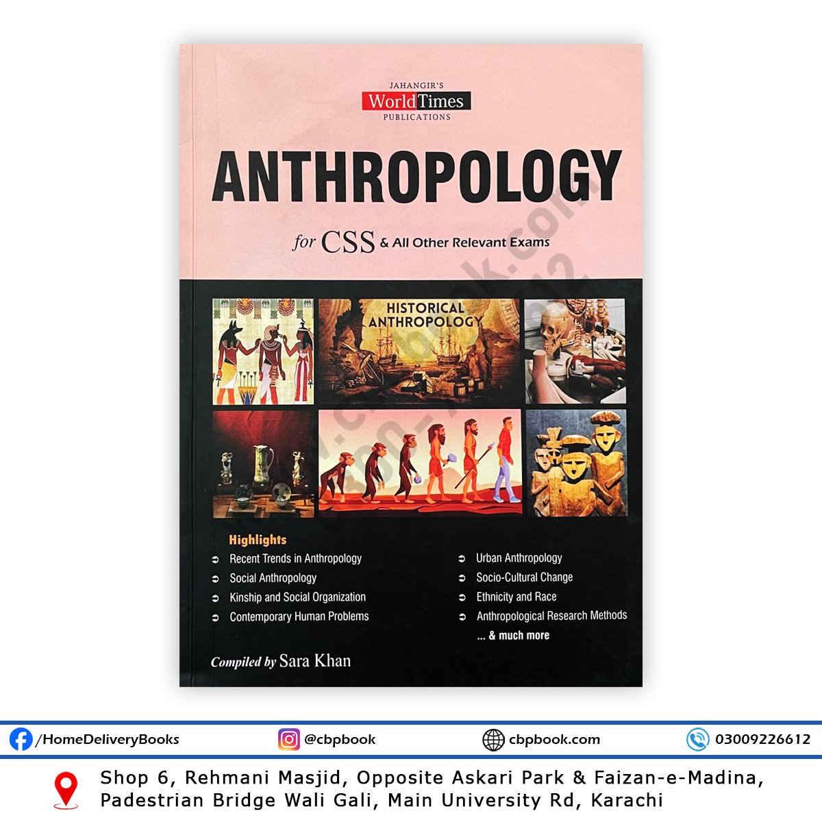 Anthropology for CSS & Other Competitive Exams by Sara Khan, published by Jahangir’s WorldTimes Publications, is a comprehensive and updated guide designed for aspirants of CSS, PMS, and other competitive examinations.