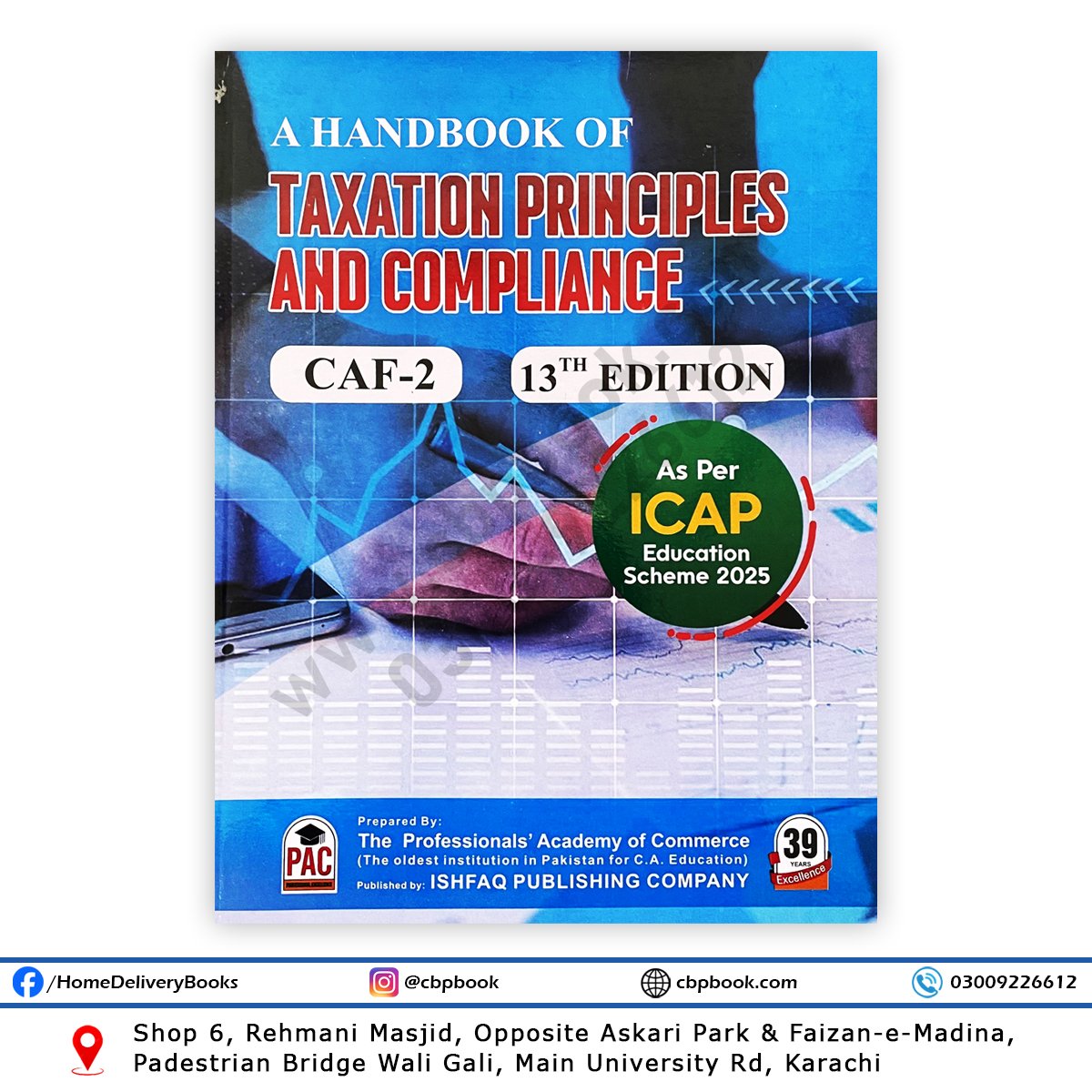 cbpbook.com offers ca caf 2 a handbook of taxation principles and compliance 13th edition by mohsin nasrullah & furqan atique – pac (ishfaq publishing company) buy online with best lowest price in Pakistan with fast shipping in all major cites of Pakistan including Karachi, Rawalpindi, Sialkot, Islamabad, Gujranwala, Hyderabad, Faisalabad, Quetta, Peshawar, Multan, Larkana, Lahore, Abbotabad, Sargodha, Sukkur and many more cities in Pakistan.