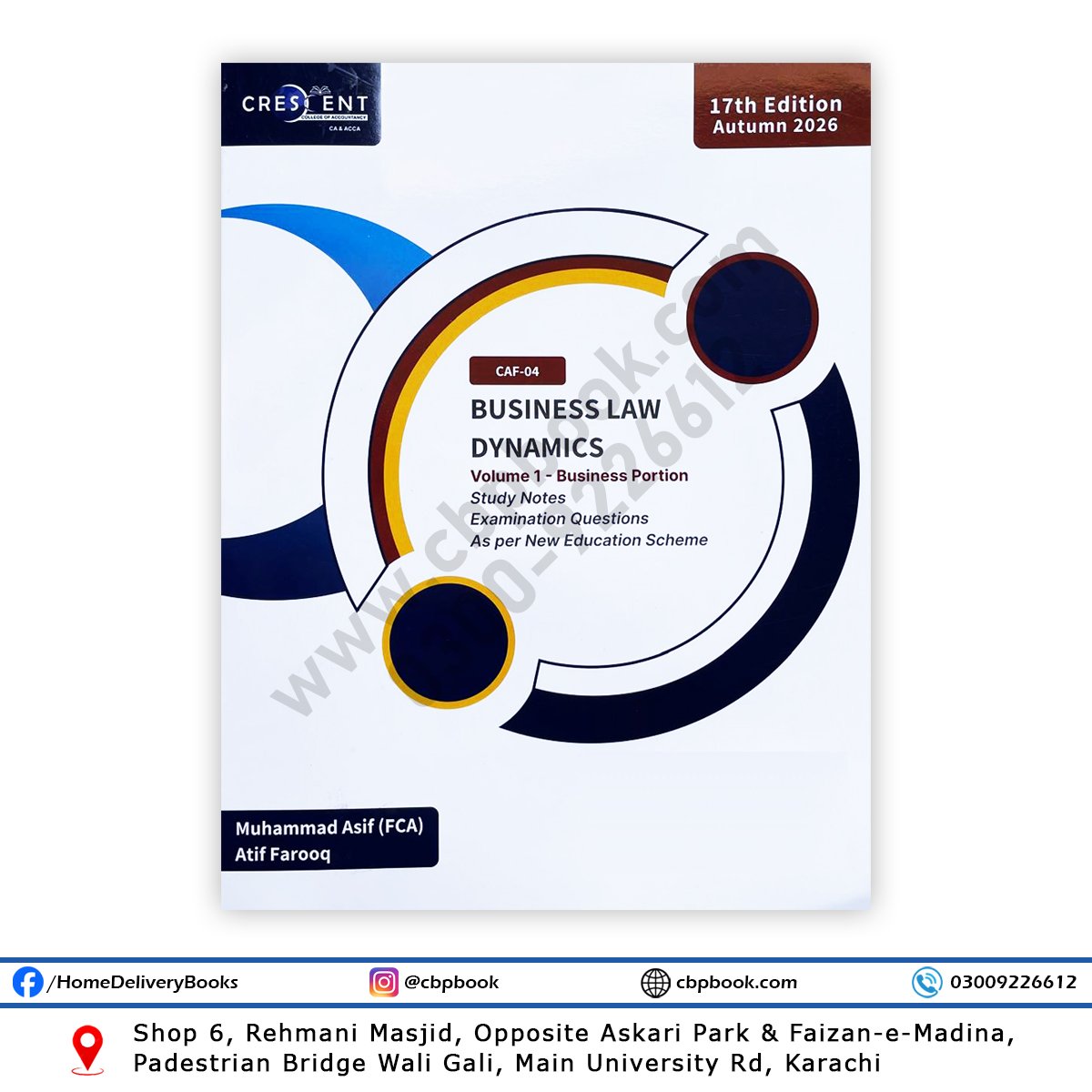 cbpbook.com offers ca caf 4 business law dynamics v1 autumn 2026 by muhammad asif – crescent buy online with best lowest price in Pakistan with fast shipping in all major cites of Pakistan including Karachi, Rawalpindi, Sialkot, Islamabad, Gujranwala, Hyderabad, Faisalabad, Quetta, Peshawar, Multan, Larkana, Lahore, Abbotabad, Sargodha, Sukkur and many more cities in Pakistan.