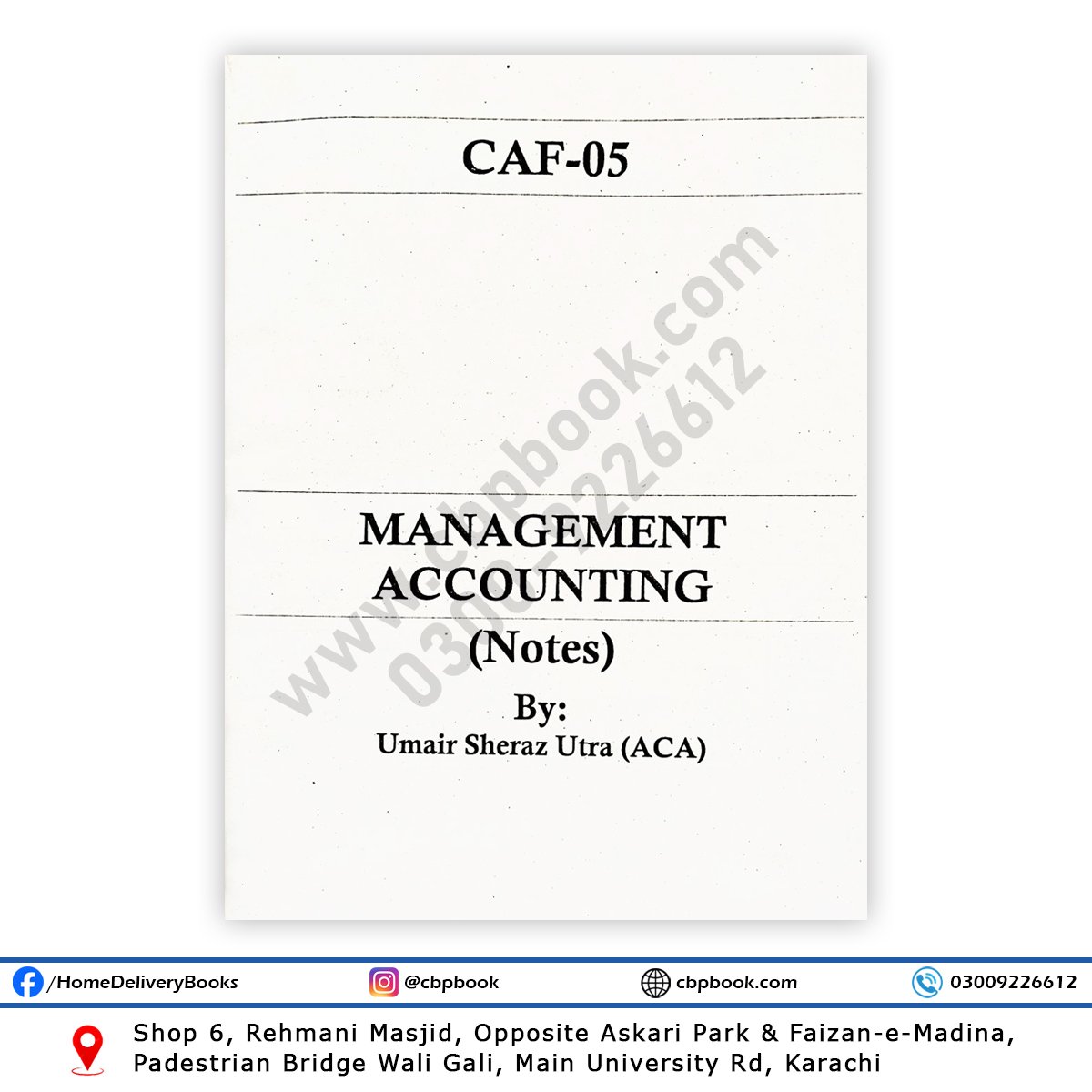 cbpbook.com offers ca caf 5 management accounting (notes) by umair sheraz – crescent buy online with best lowest price in Pakistan with fast shipping in all major cites of Pakistan including Karachi, Rawalpindi, Sialkot, Islamabad, Gujranwala, Hyderabad, Faisalabad, Quetta, Peshawar, Multan, Larkana, Lahore, Abbotabad, Sargodha, Sukkur and many more cities in Pakistan.