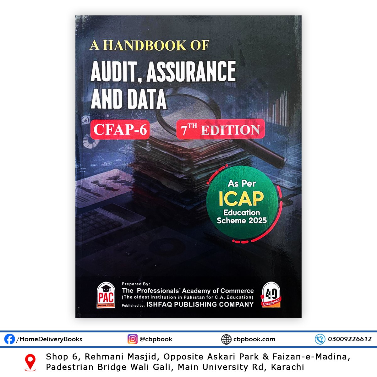 CA CFAP 6 – A Handbook of Audit, Assurance & Data (7th Edition) by PAC is a comprehensive and fully updated practice manual designed for ICAP students preparing for the CFAP level paper 6. This latest edition transforms the earlier question bank into a detailed, methodical handbook that ensures conceptual clarity, ISA-wise coverage, and exam-focused preparation.