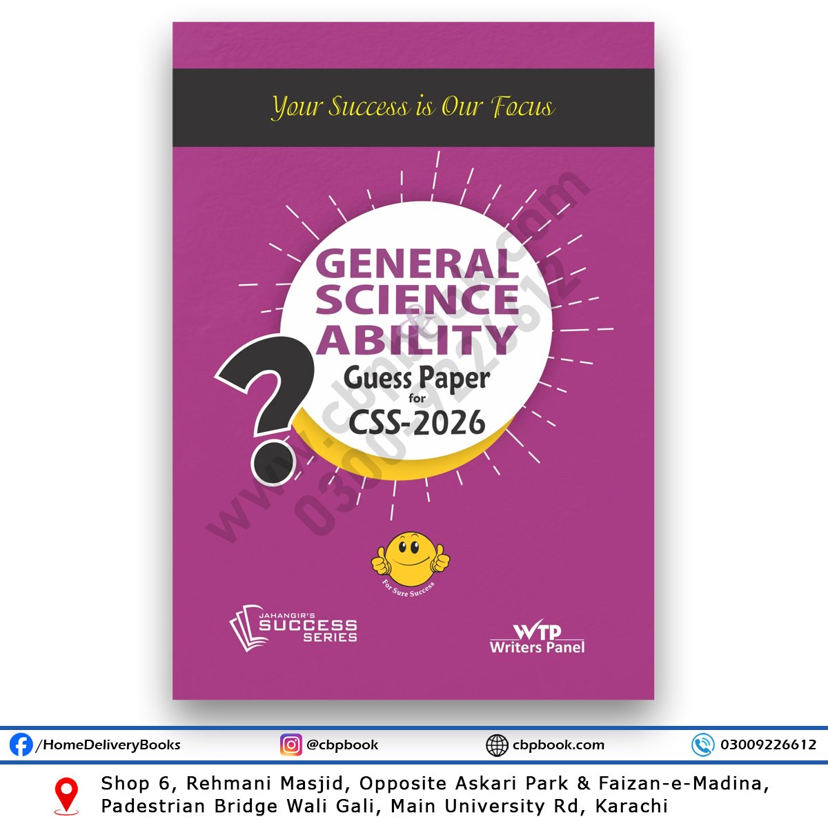 GENERAL SCIENCE & ABILITY Guess Papers For CSS 2026 by Jahangir WorldTimes Publications (JWT) is a high-value preparatory resource designed specifically for CSS aspirants aiming to score high in the GSA paper. Compiled by the WTP Writers Panel, this book is part of the renowned Jahangir’s Success Series, trusted by toppers and mentors across Pakistan.