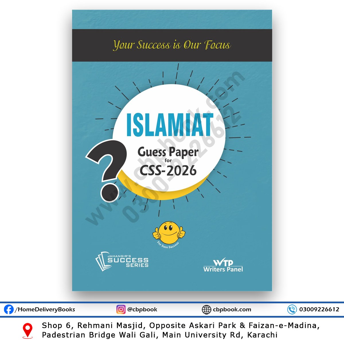 ISLAMIAT (English) Guess Papers For CSS 2026 by Jahangir WorldTimes Publications (JWT) is a highly focused exam-oriented resource designed to help CSS aspirants score high in the Islamiat (English) paper. Compiled by the WTP Writers Panel under Jahangir’s Success Series, this book provides carefully analyzed and trend-based guess papers aligned with the latest CSS syllabus and FPSC exam patterns.
