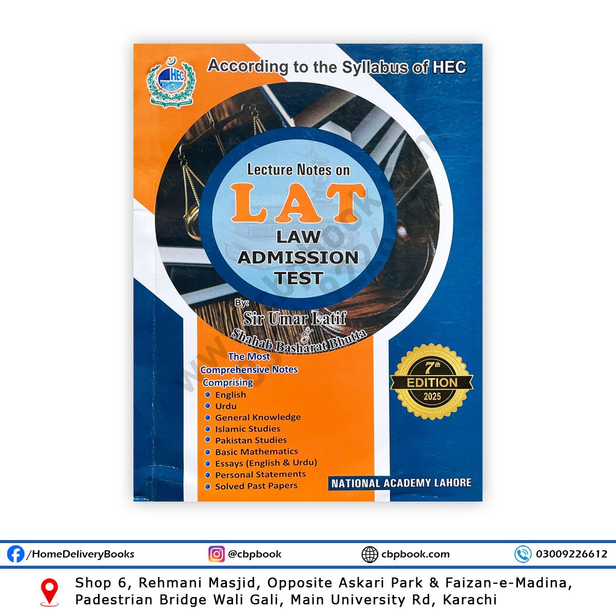 Prepare for the HEC Law Admission Test (LAT) with the most trusted and updated resource: Lecture Notes on LAT – 7th Edition 2025, authored by Sir Umar Latif and Shahab Basharat Bhutta. Published by National Academy Lahore, this book is designed to help students succeed in LAT with confidence.