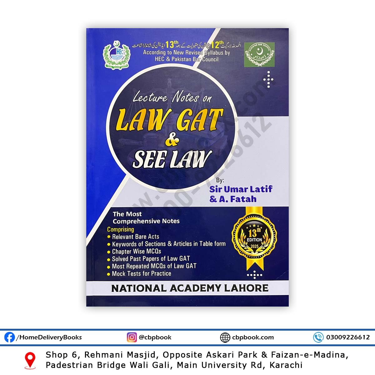 Prepare smarter and score higher with the 13th Edition (2025) of Lecture Notes on LAW GAT & SEE LAW, authored by Sir Umar Latif & A. Fatah, and published by National Academy Lahore. Designed according to the New Revised Syllabus by HEC and the Pakistan Bar Council, this all-in-one guide is your essential companion for clearing LAW GAT and SEE LAW with confidence.