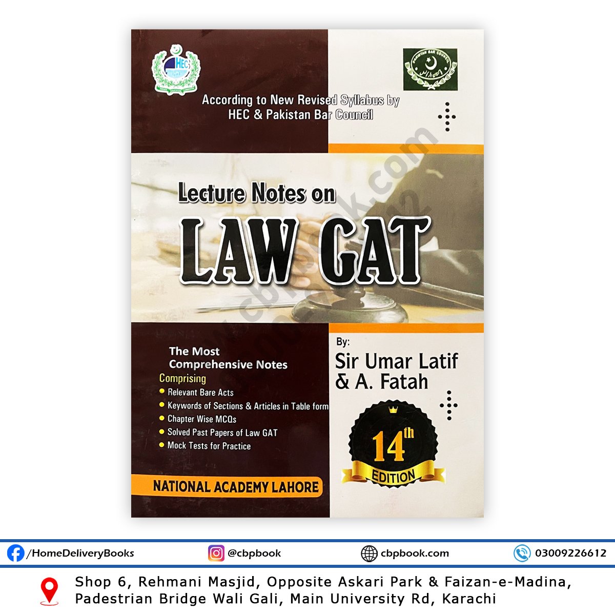 Lecture Notes on LAW GAT & SEE LAW 14th Edition 2026 By Sir Umar Latif & A Fatah – National Academy Lahore is a highly reliable and updated study resource designed according to the New Revised Syllabus by HEC & Pakistan Bar Council. This 14th Edition is specially compiled to help aspirants prepare effectively for LAW GAT and SEE LAW exams with maximum accuracy and conceptual clarity.
